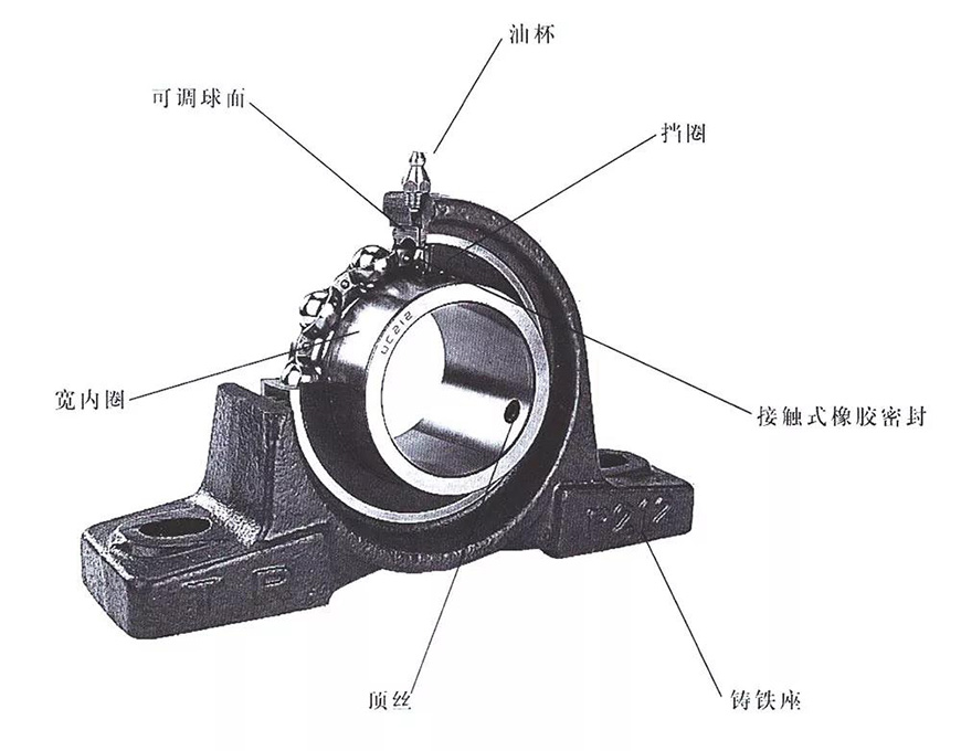 帶立式座頂絲外球面球軸承構(gòu)造: